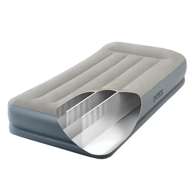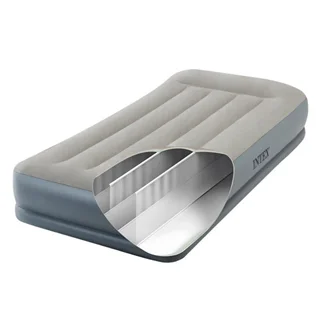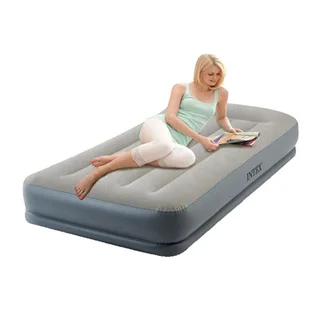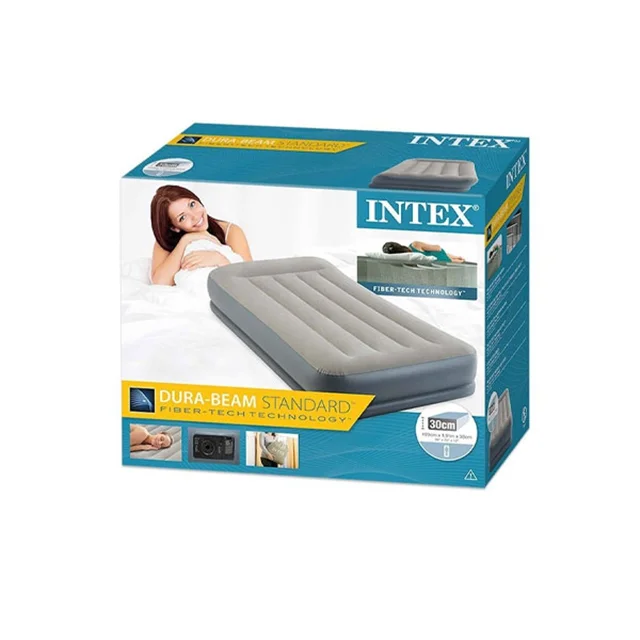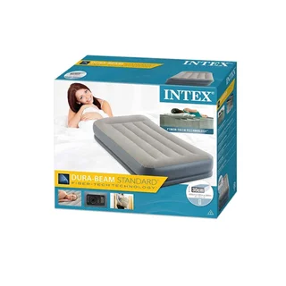 تخت بادی اینتکس مدل 64116 از سری تخت های بادی یک نفره بالش دار و تولید شده توسط کمپانی اینتکس بوده و یکی از مناسب ترین گزینه ها برای استفاده در منزل و حتی مسافرت بوده زیرا که از حجم و وزن بسیار خوبی بهره مند است. این محصول ساخته شده از لایه های داخلی از نوع PVC بوده که باعث افزایش استحکام بدنه اصلی شده و این لایه ها موجب جلوگیری از فرو رفتن سطح رویه شده و به همین دلیل مصرف کننده در طی مدت زمان استفاده به هیچ عنوان اذیت نخواهد شد. همانطور که مشاهده می کنید طراحی سطح رویه تخت نیز به صورت مواج و راحتی بوده که خود تاثیر بسزایی در جلوگیری از از تعریق بالای مصرف کنندگان خواهد داشت زیرا که موجب پوشش اعضای بدن و عبور بهتر جریان هوا می شود.