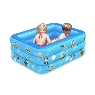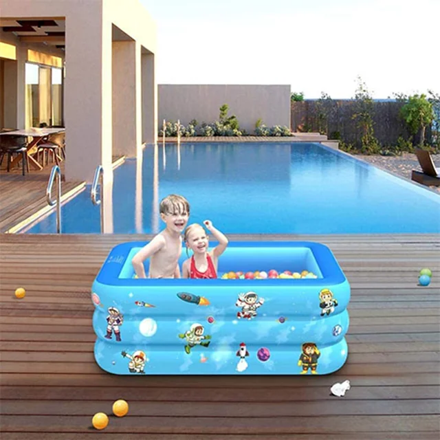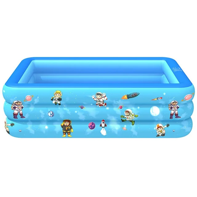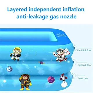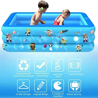 استخر آبی رنگ طرح فضایی محصولی بسیار محبوب برای سرگرمی و تفریحات آبی کودکان در تابستان و روز های گرم سال بوده که طراحی آن به صورت مستطیلی شکل و بسیار زیبا می باشد. این استخر بادی آبی رنگ با توجه به ابعاد متناسبی که دارد قابل استفاده برای بزرگسالان نیز بوده که می تواند بستر را برای بازی همزمان کودکان و والدین فراهم کند. شما می توانید این استخر را به سادگی در حیاط خانه نیز راه اندازی کنید. عمق مناسب و استاندارد استخر می تواند به کودکان اجازه شنا کردن بدهد. لازم به ذکر است برای تولید این محصول از لایه های مقاوم pvc استفاده شده که یکی از مناسب ترین و با دوام ترین اجناس برای تولید محصولات بادی می باشد، زیرا که این جنس از مواد طبیعی پلاستیکی ساخته شده و از این نظر کاملا سازگار با محیط زیست و سلامت انسان بوده، پس در هنگام برخورد بدن با استخر آسیب و حساسیتی برای پوست شما ایجاد نخواهد شد.