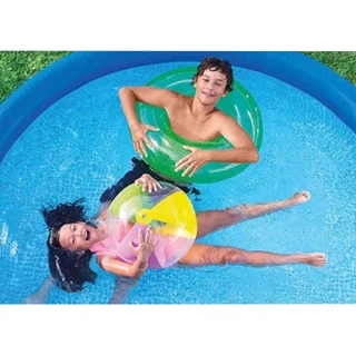 استخر آماده ایزی ست اینتکس مدل 28106 ابعاد 244*61 نمونه ای از کاربردی ترین انواع استخر برای استفاده به صورت خانوادگی و دوستانه بوده که با یک ابعاد قابل قبول در فروشگاه اینتکس طراحی و تولید شده است. این استخر سیستم نصب و راه اندازی خودکار و کاملا سریعی داشته، به این صورت که شما بعد از خرید این کالا آن را از بسته بندی خود خارج کرده و در یک محیط مسطح و عاری از اجسام نوک تیز مانند سنگ ریزه به طور کامل باز کنید و سپس از طریق پمپ باد دستی یا برقی( قابل خریداری از فروشگاه اینتکس) محصول را باد نمایید. شایان ذکر است این استخر ایزی ست ساخته شده از جنس برزنتی بوده و دیواره های آن از داخل به صورت سرامیکی طراحی شده است که به همین دلیل هنگامی که استخر را پر از آب می کنید یک نمای فوق العاده جذاب برای شما ایجاد می شود. همچنین لبه بالای استخر نیز ساخته شده از جنس پی وی سی درجه یک و عالی بوده که قابلیت باد شدن را دارد.