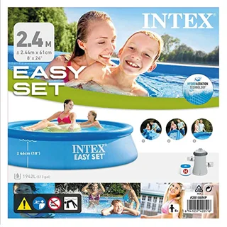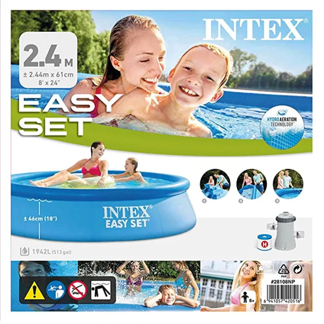 استخر ایزی ست اینتکس مدل 28108 ابعاد 244*61 یکی از هزاران مدل استخر ایزی ست تولید شده توسط فروشگاه اینتکس بوده که در سال جدید میلادی تولید و روانه بازار شد. این استخر از سری بهترین محصولات این شرکت بوده که توانسته تا در همان ابتدای ورود به بازار جهانی، توجه بسیاری از خریداران را به خود جلب کرده و یک فروش فوق العاده را ظرف مدت چند روز پشت سر بگذارد. این استخر ایزی ست به دلیل ساختار خاص و منحصر به فردی که داشته و البته سهولت در راه اندازی اش، باعث شده تا نظر خیلی از افرادی را که به دنبال یک استخر بادی و یا استخر پیش ساخته کاربردی هستند به خود جلب کرده و رضایت تمامی آن ها را به راحتی کسب نماید. این محصول بادی دارای فرم کلی دایره ای شکل بوده و رنگ بدنه آن نیز به رنگ آبی می باشد.