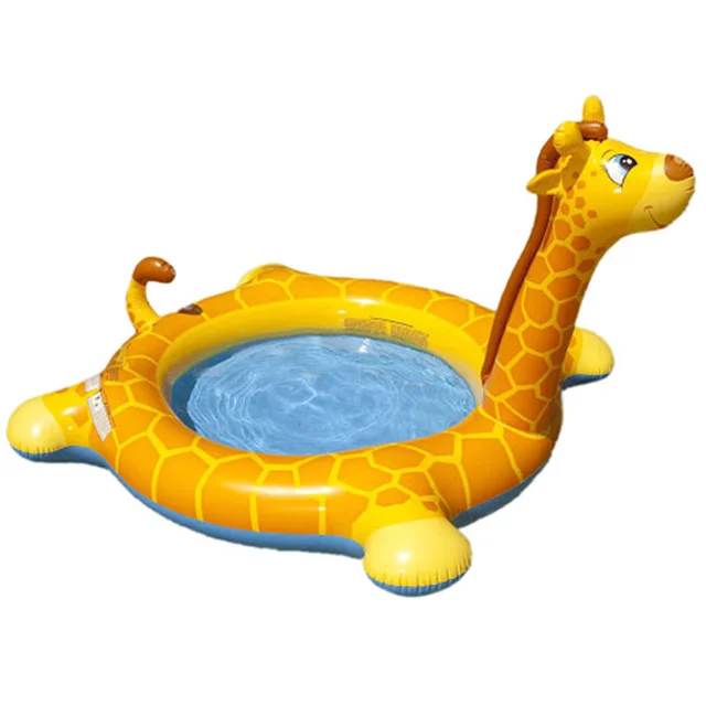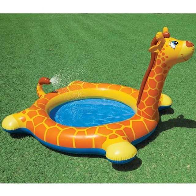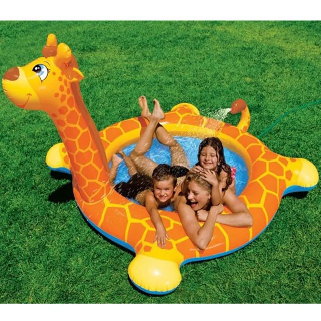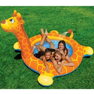 استخر بادی زرافه یا استخر بادی زرافه فواره دار یکی از پر مخاطب ترین استخر های بادی شرکت اینتکس می باشد.استخر بادی زرافه با طراحی بی نظیر خود و همچنین بعلت عمق کم محصول برای کودکان بالای 3 سال بسیار لذت بخش و ایمن می باشد.شکل طراحی استخر بادی زرافه برای کودکان بسیار مهیج بوده و کودکان با دیدن این استخر ارتباط خوبی با آن برقرار می کنند که برای آنها نیز شادی بخش می باشد. استخر بادی زرافه را میتوانید در باغ و یا حیاط استفاده کنید و پیشنهاد میشود حتما زیر استخر خود حتما از یک زیر انداز و یا کف پوش استفاده نمایید که قسمت کف استخر دچار آسیب دیدگی های احتمالی نشود.