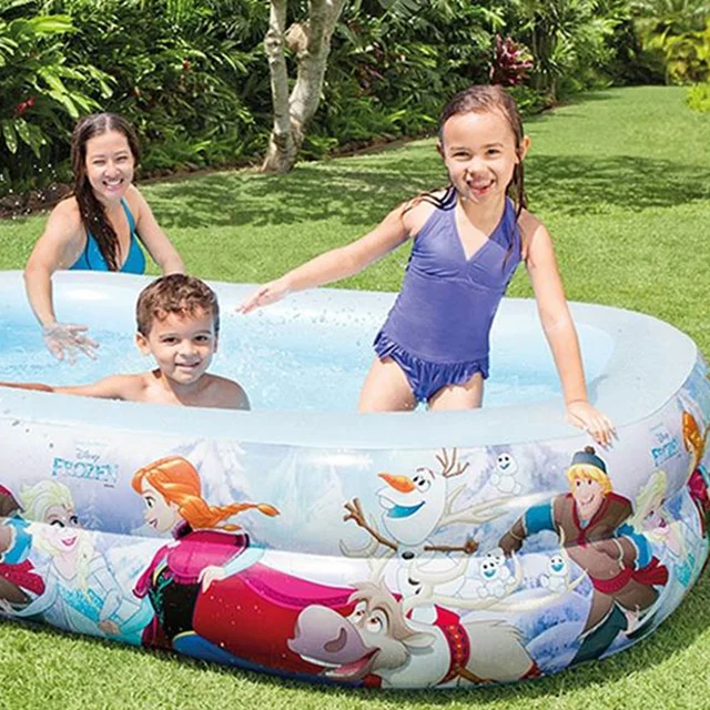 استخر مستطیلی شکل با طرح کارتونی فروزن یکی از محبوب ترین استخرهای کودکان در رده ی سنی 6 سال به بالا می باشد. این استخر به شکل مستطیلی ساخته شده که ارتفاع آن از دو لایه تشکیل شده که هر لایه دارای دریچه باد مجزا می باشند. طرح روی بدنه استخر شخصیت کارتونی فروزن است که از محبوب ترین شخصیت های کارتونی برای کودکان است و موجب می گردد کودک شما در هنگام بازی احساس لذت و شادی بیشتری را تجربه کند. از مزیت این استخر می توان به دریچه ی تخلیه آب اشاره کرد که موجب سهولت در خروج آب از استخر می گردد. جنس این استخر وینیل بوده و از مقاومت بالایی در برابر ضربه و فشار برخوردار است. همچنین انعطاف پذیری و ضد حساسیت بودن این محصول موجب می گردد پوست کودک شما آسیب نبیند.