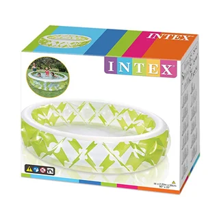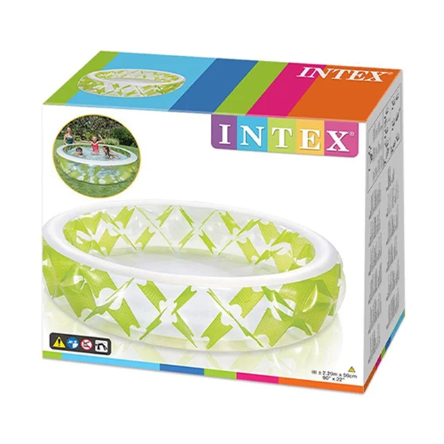 استخر بادی بزرگ اینتکس دارای طراحی بسیار جدید و دوست داشتنی می باشد و مدل به روز شده استخر بادی کودک سنتی 57182 تولید شده است که پیش از این از رنگ بندی های مختلفی بهره می برد. اما در مدل جدید این استخر باید دیواره ها کاملا شفاف هستند و لایه های داخلی آن سبز روشن می باشد که زیبایی خاصی را به همراه دارد. بدنه استخر بادی بچه گانه از نوع گرد می باشد و کودکان در رده سنی بالاتر از یک سال می توانند از آن استفاده کنند.