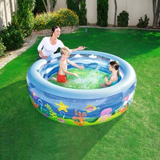 استخر بادی طرح اقیانوس یکی از زیباترین و با کیفیت ترین محصولات بادی شرکت بست وی می باشد.استخر بادی اقیانوس با 196 سانت قط محصول و 51 سانت ارتفاع جز استخرهای سایز بزرگ محسوب می شود.دارای 3 لایه ی مجزا و 3 دریچه باد جداگانه می باشد.جنس بدنه ی این استخر ساخته شده از وینیل می باشد و سازگار با پوست بدن بوده و کاملا با کیفیت و مقاوم است.ابعاد استخر به گونه ای می باشد که ظرفیت نگهداری 700 لیتر آب را دارا می باشد.جهت سهولت در تخلیه آب در قسمت کف استخر یک دریچه تخلیه آب نیز تعبیه شده.