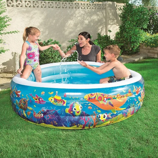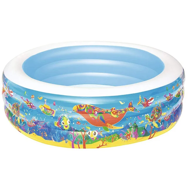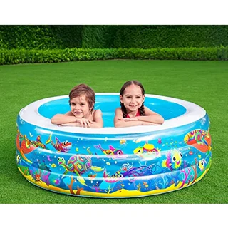 استخر بادی بست وی یا استخر بادی طرح اکواریوم بست وی از محصولات متنوع شرکت بست وی می باشد که ساخته شده از جنس وینیل می باشد.جنسی نرم و منعطف دارد و طول عمر نسبتا بالایی دارد. استخر بادی اکواریوم با طراحی زیبا متنوع و رنگ شاد جز کارهای پر طرفدار شرکت بست وی می باشد. فضای طراحی شده برای استفاده 2 کودک بالای 6 سال در نظر گرفته شده و ظرفیت آن حدود 400 لیتر می باشد. دارای برچسب تعمیرات بوده و در مواقعی که محصول دچار آسیب دیدگی شود،می توانید بصورت موقت آن را تعمیر نمایید.