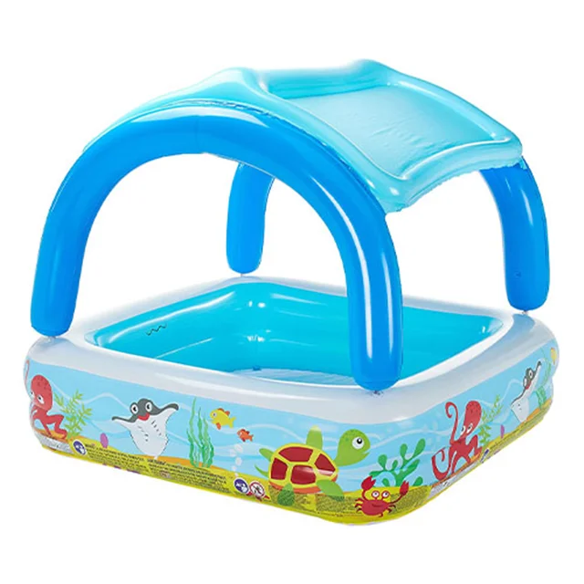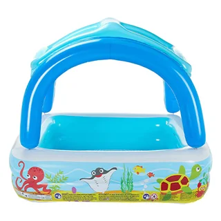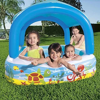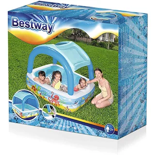 استخر بادی مربعی سایبان دار بست وی یکی دیگر از جدیدترین انواع استخر بادی تولید شده توسط برند بست وی برای رده سنی کودک بوده که با توجه به قیمت مناسب و کیفیت بدنه بالا توانسته نظر مثبت مصرف کنندگان را به خود جلب کند. این محصول از سری استخر های بادی تفریحی برای سنین کودکان و خردسالان بوده که ساخته شده از جنس PVC با رویه طرح چرم و بدنه طرح دار می باشد. این استخر یکی از استاندارد ترین استخر های بادی بوده که امکان استفاده به عنوان استخر توپ را فراهم خواهد کرد. سایبان همراه این کالا نیز قابلیت نصب و جدا شدن به صورت مجزا داشته و توسط چند دریچه باد مجزا توسط پمپ های باد مختلف قابل راه اندازی خواهد بود.