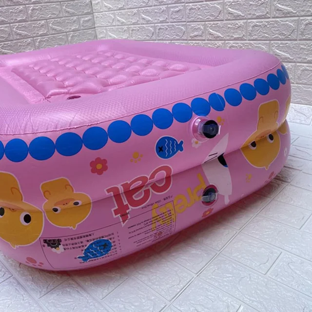 در بخش ابتدایی نقد و بررسی استخر بادی کودکانه جدید صورتی باید در ارتباط با شیوه ساخت و طراحی این استخر با شما صحبت کنیم. قطعا این مسئله بسیار مهم خواهد بود که شما با آگاهی کامل در خصوص بخش های مختلف این محصول اقدام به خرید و تهیه این کالا کنید. در همین رابطه نیز باید اشاره داشته باشیم که ساختار اصلی بدنه این استخر مستطیلی شکل است. این ساختار باعث شده تا از این استخر بتوانید به راحتی هم به عنوان استخر بادی کودک ، هم به عنوان استخر توپ و هم وان بادی به بهترین شکل ممکن استفاده کرد. هم چنین باید اشاره داشته باشیم که ساختار اصلی این کالا دو لایه است که به صورت دو لایه هم اندازه هم و یکسان شکل گرفته است. هم چنین بدنه اصلی این محصول صورتی است. در واقع این صورتی بودن رنگ این محصول خود به دو بخش تقسیم شده است. در واقع ناحیه داخلی و بیرونی این استخر رنگ روشن تری دارد و ناحیه بالایی این محصول نیز تیره تر خواهد بود.