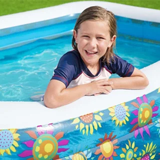 استخر بادی کودک با بدنه طرح دار bestway 54120 زیبا و خاص طراحی شده است و می تواند به راحتی در نظر کودکان جذاب به حساب بیاید. مخاطب این محصول کودکان بالای 6 سال می باشند که به سراغ داشتن تفریحات آبی می روند که با توجه به داشتن ابعاد مناسب به همراه دوستان خود و یا والدین قادر به آبتنی در فصول گرم سال خواهند بود. این بدنه به گونه ای ساخته شده است که والدین نیز در داخل آن جای می گیرند و می توانند در کنار کودکان برای حفظ ایمنی آن ها حضور داشته باشند. علاوه بر این موارد دیواره ها نیز به گونه ای ساخته شده است که ایمنی کافی مهیا کرده است و کودکان در داخل آن احساس آرامش دارند. دیواره محکم و با استحکام است و ساختاری لایه ای دارد. از این رو می توان در بخش داخل بدنه به دیواره تکیه کرد و به آبتنی مشغول شد.