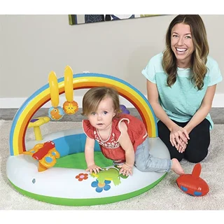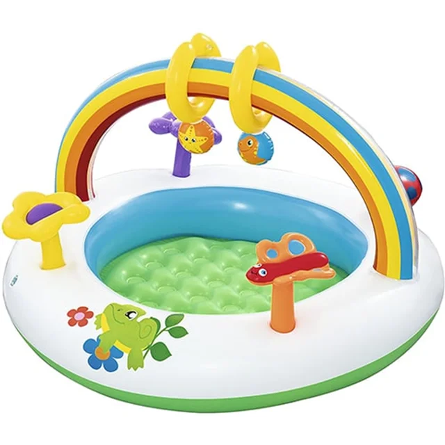 استخر بادی کودک بست وی مدل رنگین کمان یکی دیگر از کوچگترین انواع استخر بادی برای رده سنی کودکان کمتر از سه سال بوده که کارخانه بست وی با ظاهری استاندارد و فانتزی و بدنه ای کاملا کاربردی طراحی کرده و فروشگاه سعید اینتکس با قیمتی مناسب به فروش می رساند.بدنه اصلی این استخر بادی کاملا گرد بوده و بر روی این بدنه دو عدد دریچه باد مجزا جهت راه اندازی استخر بادی تعبیه شده است. یکی از این دریچه های باد برای راه اندازی ساختاری اصلی استخر بادی مورد استفاده قرار گرفته و دریچه دوم برای راه اندازی و باد کردن بخش کف این استخر بادی کاربرد دارد. به دلیل کف بادشو این استخر بادی بوده که کودکان یک ساله در زمان بازی و استفاده از محصول از ایمنی کامل برخوردار خواهند بود.