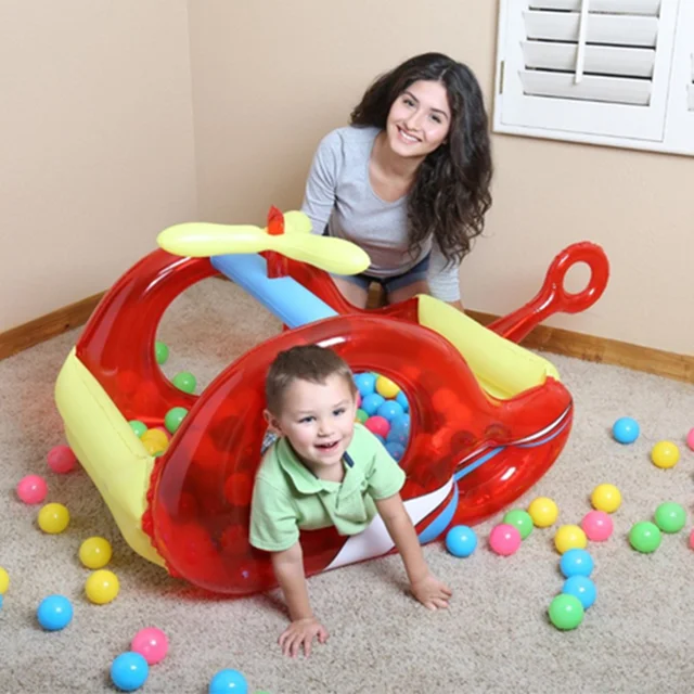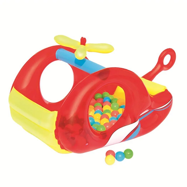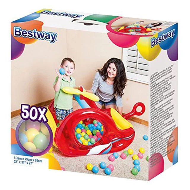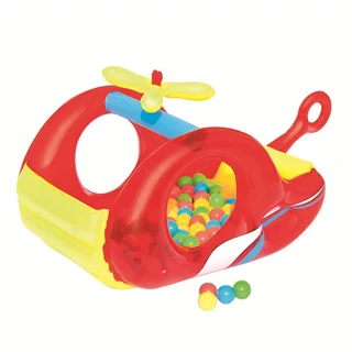 استخر بادی کودک بست وی مدل هلی کوپتر یکی دیگر از جذاب ترین انواع استخر بادی توپ بوده که برای استفاده بچه ها با بدنه مقاوم و استاندارد توسط کارخانه بست وی طراحی و تولید شده است. محصولاتی نظیر استخر بادی که برای استفاده رده سنی کودک طراحی و تولید شده نیاز به ظاهری فانتزی و رنگی داشته تا مورد استقبال این گروه سنی واقع گردد. با در نظر گرفتن این نکته بوده که ظاهر این استخر بادی دقیقا مشابه یک هلیکوپتر بادی بزرگ با رنگبندی شاد طراحی شده که در بخش کناری دریچه هایی جهت تردد ساده کودک به بخش مخزن تعبیه شده است. وزن بدنه این استخر بادی تنها 1.5 کیلوگرم بوده و در زمان جمع اوری شدن فضای کمی را اشغال کرده و در عین حال در زمانی کوتاه راه اندازی خواهد شد.