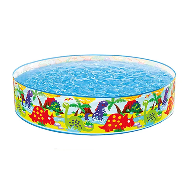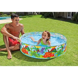 اولین بخش از نقد و بررسی این استخر تلقی را به بررسی نوع ساخت و شیوه طراحی این استخر اختصاص داده ایم که با در نظر گرفتن این ویژگی ها شما بتوانید خرید و ثبت سفارش این محصول را انجام دهید. در همین رابطه در بخش ابتدایی باید عنوان کنیم که استخر تلقی کودک طرح دار اینتکس ساختاری گرد دارد که از این نظر ویژگی خوب این محصول نیز به شمار رفته و کودک فضای بزرگی را در اختیار دارد که به بازی و تفریح بپردازد. یکی دیگر از خصوصیات خوب این استخر بحث طرح های موجود بر روی این استخر می باشد. شما می توانید مشاهده کنید که بدنه اصلی این محصول به صورت شفاف تولید شده و بر روی بخش بیرونی این محصول طرح انواع دایناسورها و همین طور درختان به چشم می خورد که یک جلوه نوستالژی و جذاب را برای کودک شما فراهم خواهد کرد.