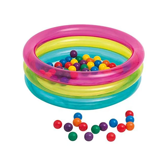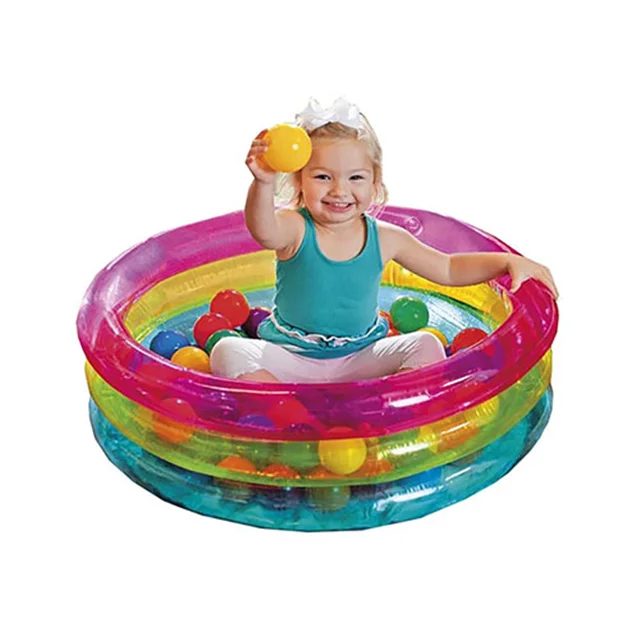 استخر توپ کودک سه لایه چند رنگ اینتکس با رنگ بندی زیبا و ظاهری جذاب است که با پر کردن توپ های رنگی در داخل آن میتوانید لحظات شادی را برای کودک دلبندتان رقم بزنید. این کالا بدنه شفاف داشته و از سه لایه تشکیل شده که هر یک از لایه ها مجهز به دریچه های باد اختصاصی و جداگانه ای هستند. این نوع طراحی بدنه در زمینه افزایش طول عمر کالا و همچنین میزان انعطاف پذیر بدنه آن موثر می باشد. همانطور که می دانید این محصول در دسته استخر های توپ قرار دارد پس می بایست با قرار دادن توپ های پلاستیکی رنگی در داخل آن برای وقت گذرانی کودکان به همراه دوستانشان فضایی مهیج، جذاب و ایمن را ایجاد کند به همین سبب یک بسته بندی کامل 50 عددی توپ پلاستیکی رنگی برای بازی کودکان نیز دریافت خواهید کرد.