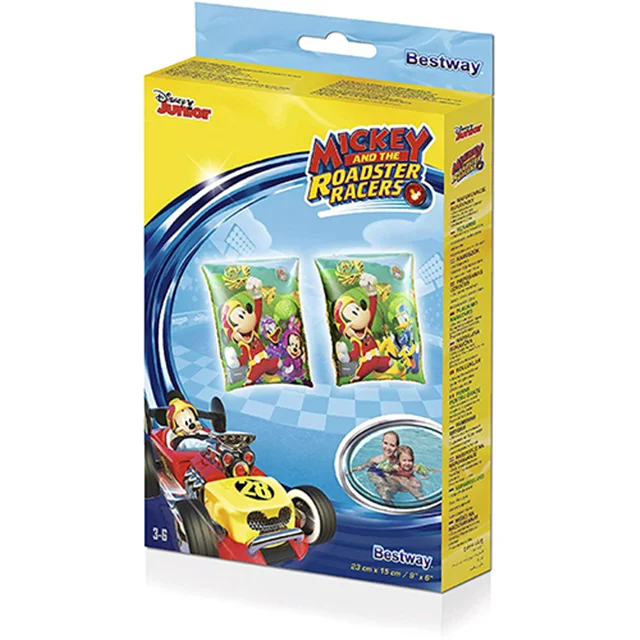 بازو بند شنا جدید طرح میکی موس یکی از کاربردی ترین و جذاب ترین بازو بند های تولید شده برای کودکان بوده که بر روی آب از ایمنی بسیار بالایی برخوردار می باشد. این بازوبند طرح کارتونی از سری لوازم تفریحی در آب برای کودکان بوده که به منظور آموزش شنا و یادگیری آن بسیار کاربردی می باشد. این بازوبند شنا با طرح انیمیشن میکی موس تولید شده توسط شرکت معتبر بست وی است که ساخته شده از جنس وینیل مقاوم با ضخامت قابل قبولی می باشد. این محصول جذاب طراحی شده برای کودکان 3 تا 6 ساله بوده و دارای طرحی جذاب که بسیار محبوب است و مورد توجه همه کودکان قرار می گیرد. این محصول بادی کودک در هنگام استفاده کودکان به آن ها حس امنیت و لذت فوق العاده ای را در آب ایجاد می نماید و می تواند برای آن ها بسیار سرگرم کننده نیز باشد. این بازوبند پر کاربرد زیبا می تواند به والدین کمک بسزایی نماید و برای کنترل و امنیت کودکانشان در داخل آب بسیار کاربردی باشد.