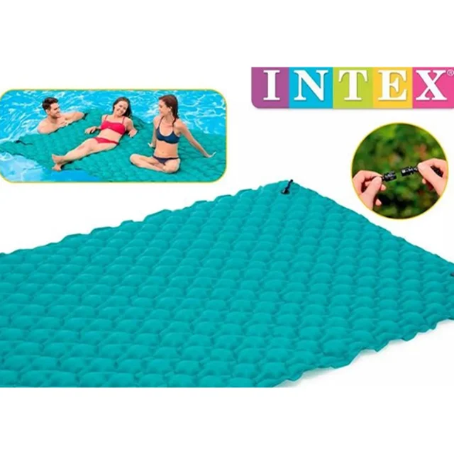 تشک بادی اینتکس مدل 56841 یکی از بزرگترین و کاربردی ترین تشک های بادی تولید شده برای استفاده روی آب های آرام و کم عمق مانند استخر ها بوده و دارای ظرفیت دو نفره می باشد. این تشک بادی برای سنین بزرگسال تولید شده و دارای طراحی بدنه راحت با قابلیت تعادل بالا روی آب می باشد. این تشک بادی روی آب در واقع دارای طراحی بدنه مستطیلی شکل بوده که از طراحی سطح رویه مواج برخوردار می باشد تا هنگام نشستن و یا درزا کشیدن روی آن اعضای بدن شما را به خوبی پوشش داده و موجب عبور هرچه بهتر جریان هوا می شود تا مصرف کنندگان راحتی زیادی را تجربه کنند. جنس بدنه اصلی این کالا از پلاستیک پی وی سی وینیل با ساختار بدنه دو لایه بوده که از ضخامت خوبی برخوردار می باشد تا در برابر دما و فشار آب مقاومت لازم و کافی را از خود نشان دهد. این جنس بدنه در برابر نور خورشید نیز مقاوم بوده به همین دلیل می توان با خیالی راحت در فضای باز نیز استفاده کرد.