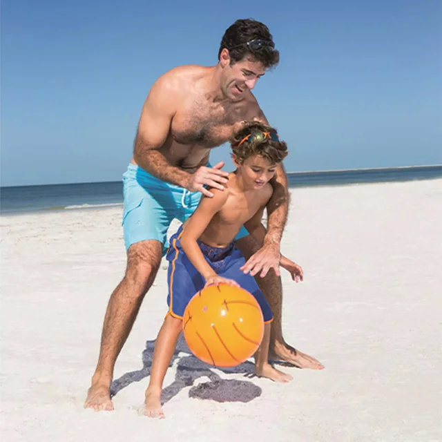 توپ بادی طرح بسکتبال کودک هم از سری محصولات و اسباب بازی های خلاقانه ای است که شرکت بست وی سعی کرده تا آن را با بهره گیری از ساختار توپ بسکتبال تولید و عرضه کند. ویژگی های فوق العاده این توپ باعث شده تا یک محصول مهیج برای بازی و تفریح کودکان در کنار بزرگسالان باشد. از نظر جنس و کیفیت اگر بخواهیم این محصول را بررسی کنیم در ابتدا باید اشاره کنیم که این محصول از بدنه ای از نوع وینیل طراحی شده است. این جنس نشان از کیفیت بالای این محصول دارد. از نظر ضخامت نیز این توپ به گونه ای طراحی شده که به راحتی آسیب نخواهد دید ولی در عین حال باید مراقبت های لازم نیز از این محصول انجام شود تا در اثر برخورد دچار آسیب نشود.