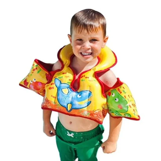 جلیقه و بازوبند اینتکس مدل 58673 یکی از مناسب ترین و با کیفیت ترین جلیقه های بادی مخصوص کودکان می باشد که از طرح و رنگ بسیار زیبا و کودک پسندانه ای برخوردار می باشد. لازم به ذکر است این جلیقه بادی کودک دارای بازوبند متصل به بدنه جلیقه بوده که به صورت طرح دار ساخته شده و از ایمنی لازم برای کودکان شما برخوردار می باشد. این جلیقه و بازوبند بادی کودک یکی از جدیدترین محصولات بادی برای تفریحات و نجات غریق کودکان در آب های آرام و آزاد بوده که در میان جدید ترین نوع جلیقه ها نیز قرار گرفته و همچنین از کیفیت و دوام بالایی نیز برخوردار بوده است. این کالا از سه قسمت متصل بهم طراحی شده و همینطور از سه محفظه باد جداگانه بهره می برد و در واقع علاوه بر جلیقه نجات دارای بازو بند متصل می باشد که ایمنی این محصول را بالا برده است. قسمت میانی این جلیقه بادی نیز توسط یک قفل پلاستیکی به بدنه متصل می شود.
