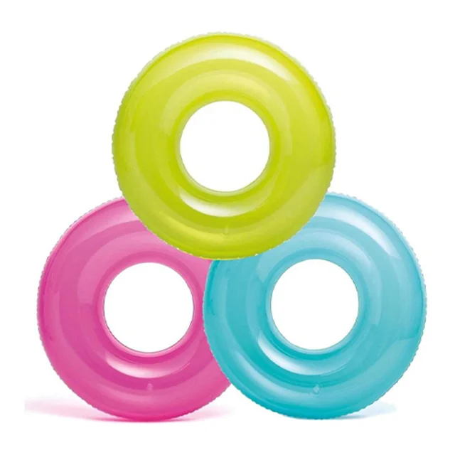 حلقه شنا بادی یک نفره شفاف سبز یکی از زیبا ترین و جذاب ترین حلقه های شنا برای تمامی سنین مختلف بوده که برای تفریحات آبی و استفاده بر روی آب های آرام مناسب می باشد. این حلقه شنا دارای رنگ شاد سبز با رویه شفاف می باشد که با قرار گیری بر روی آب جذابیت و زیبایی فوق العاده ای ایجاد می نماید. این محصول یکی از جدیدترین نوع حلقه های شنا از نظر طراحی رویه بدنه بوده که توسط شرکت اینتکس با تحمل وزن مناسب طراحی شده و از استحکام و کیفیت لازم برخوردار بوده که به صورت فوق العاده جذاب و بادوام تولید گشته است. جنس این محصول بادی نیز همانند جنس هر نوع محصول دیگری می تواند سبب تغییر کیفیت و طول عمر آن شود، بنابراین در خرید این محصولات باید به این نکته توجه داشته باشید. برای تولید این حلقه شنا از بهترین نوع پی وی سی با روکش چرم استفاده شده و تمامی وزن وارده به محصول را به راحتی تحمل خواهد کرد.