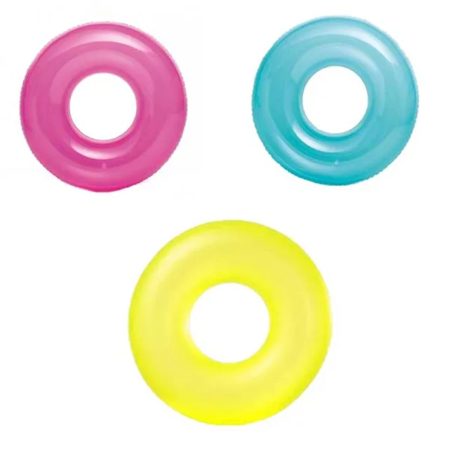 کودکان می توانند دستان خود را به دور این محصول حلقه کرده و یا وارد آن شده و نیم تنه بالا خود را بیرون از آب نگه دارند و شنا کنند. این حلقه شنا بادی مناسب برای تمامی آب ها بوده و شما می توانید از آن در عمق های بسیار زیاد بدون هیچ گونه نگرانی استفاده کنید .برای راه اندازی این کالا احتیاج به یک پمپ باد دستی یا برقی دارید که می توانید آن را از فروشگاه اینتکس بصورت جداگانه تهیه کنید. این محصول با طرح و رنگ بندی شاد و زیبایی تولید شده که به دلیل توجه به روحیات کودکان این عمل صورت گرفته است. برای خرید این کالا زیبا در بالاترین سطح کیفیت بدنه و مناسب ترین قیمت می توانید به نمایندگی اینتکس مراجعه کرده و یا از طریق سایت اینتکس اقدام به یک خرید مطمئن و آنلاین نمایید.