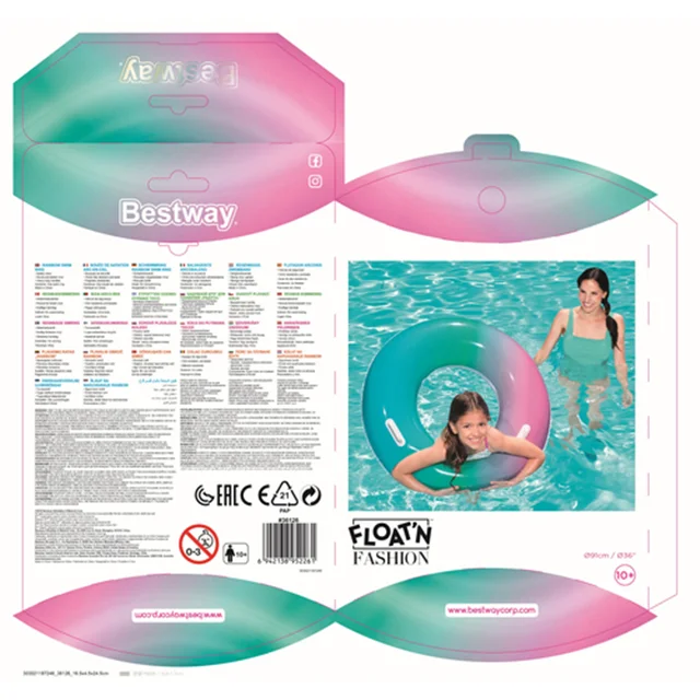 حلقه شنا بادی بست وی رنگارنگ دیگر تولید جدید شرکت بست وی می باشد که هم از نظر نوع رنگ بندی و هم از نظر جنس و کیفیت بدنه توانسته یک محصول مناسب و ایده آل را به دست شما برساند. ساختار این محصول به گونه ای است که مشتریان می توانند با خیالی راحت یک حلقه شنا را برای تفریحات خود بر روی آب انتخاب کرده و سفارش دهند. در همین رابطه باید عنوان کنیم که این حلقه شنا نیز با بهره گیری از چندین رنگ در طیف تیره شکل گرفته است. در واقع شما می توانید کنار هم قرار گرفتن رنگ های آبی ، سبز و صورتی را به وضوح بر روی بدنه این محصول مشاهده کنید که نکته مثبت رنگ بندی و ظاهری این محصول به شمار می رود.