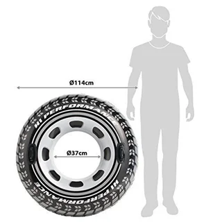 حلقه شنا بادی طرح تایر جدید از سری تولیدات متفاوت و جذاب کارخانه بزرگ اینتکس بوده که برای استفاده تمامی افراد بزرگسال و کودک طراحی و تولید شده است. این حلقه شنا بادی بر اساس استاندارد های جهانی تولید شده و تا میزان 90 کیلوگرم را می تواند با ایمنی کافی بر روی سطح خود ثابت نگه دارد. این کالا به صورت حلقوی طراحی شده که نوع طراحی که بر روی این حلقه بادی نقش بسته، آن را شبیه به تایر و لاستیک ماشین کرده است .این محصول دوست داشننی برای استفاده در آب های ارام مانند استخرها مناسب بوده است. لازم به ذکر است این حلقه شنا بادی دارای ساختار و طراحی پرتابل بوده به این صورت که وزن بدنه محصول بسیار کم بوده، در زمان جمع آوری شدن یک فضای بسیار کمی را اشغال خواهد کرد. از طرفی سیستم محصول به صورتی طراحی شده که در کمترین زمان ممکن راه اندازی و برای استفاده شما آماده استفاده می شود.