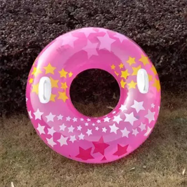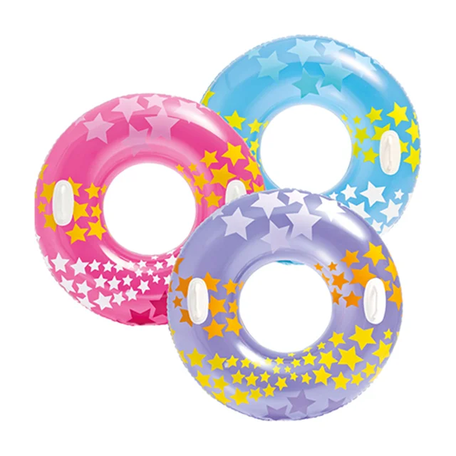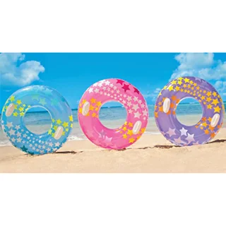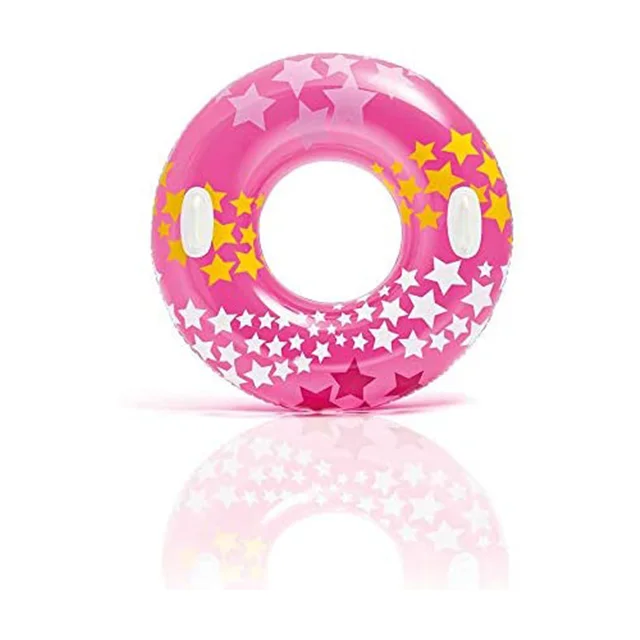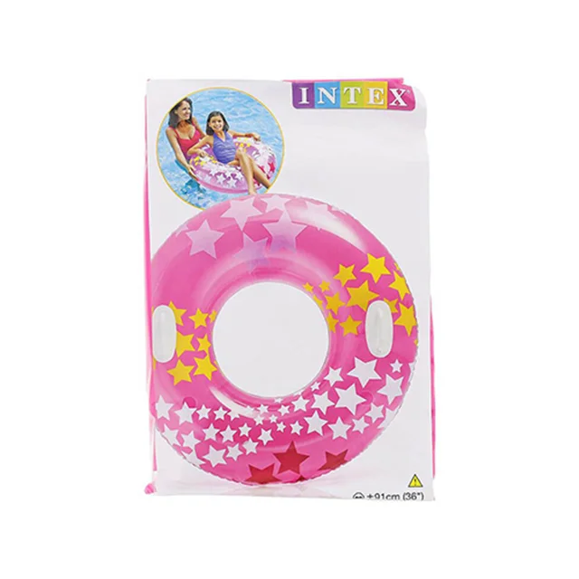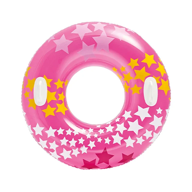 حلقه شنا بادی کودک طرح ستاره صورتی یکی از زیبا ترین و محبوب ترین حلقه های شنا تولید شده بوده که در سال جاری و توسط برند مطرح و معتبر اینتکس روانه بازارهای جهانی شده و از کیفیت ساخت بسیار بالایی برخوردار است. جنس بدنه این محصول از وینیل درجه ی و با دوام بوده که یکی از مهم ترین خصوصیت های آن مقاومت و استحکام بالا در کنار نرمی و انعطاف پذیری بی نظیر می باشد. این محصول با توجه به اسمی که داشته، طراحی به صورت حلقه ای دارد و با ساختار بادی خود می تواند به راحتی بر روی آب شناور بماند. افراد می توانند به دلخواه دستان خود را به دور این محصول حلقه کنند و یا وارد آن شده و نیم تنه بالای آن را بیرون از آب نگه دارند و به راحتی شنا کنند و همچنین می توانند بر روی این حلقه شنا بنشینند. این حلقه شنا مناسب برای تمامی آب ها بوده و شما می توانید از آن در عمق های زیاد و حتی در رودخانه ها نیز استفاده کنید.