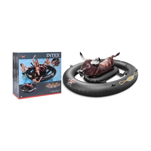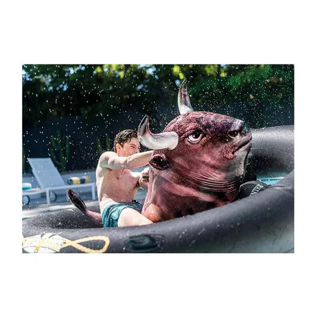 شناور بادی اینتکس مدل 56280 طرح ماتادور یکی از خاص ترین لوازم تفریحات آبی در آب های آرام و عمیق بوده که در سال جدید میلادی توسط برند معتبر اینتکس طراحی و تولید شده است. این شناور بادی ساخته شده از جنس پی وی سی با روکش دو نوع روکش شفاف در قسمت رویه و طرح چرم در قسمت زیرین می باشد. این کالا یکی از محصولات فوق العاده جذاب بوده که تا کنون مشابهی برای آن در بازار وجود نداشته و خلاقیت در طراحی این شناور بادی، آن را به محصولی دوست داشتنی تبدیل کرده است. قسمت داخلی این شناور بادی از یک پایه مشکی مشابه قسمت بیرونی خود و همچنین یک گاو بادی به همراه یک عدد دستگیره در قسمت بالایی تشکیل شده که برای بهره بردن از این بازی یک نفر بر روی گاو قرار می گیرد و با گرفتن دستگیره مخصوص تعادل خود را حفظ می کند.
