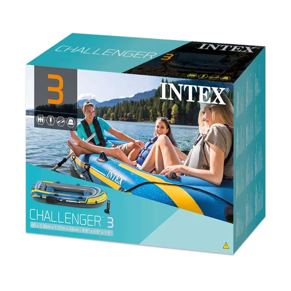 قایق بادی اینتکس مدل چلنجر 3 نفره (کد 68380) از برند INTEX است. این قایق تاییدیه گارد ساحلی امریکا را دریافت کرده است و با ابعاد طول 295 سانتیمتر، عرض 137 سانتیمتر و ارتفاع 43 سانتیمتر، به آسانی سه نفر را ایستاده در خود جای میدهد.
