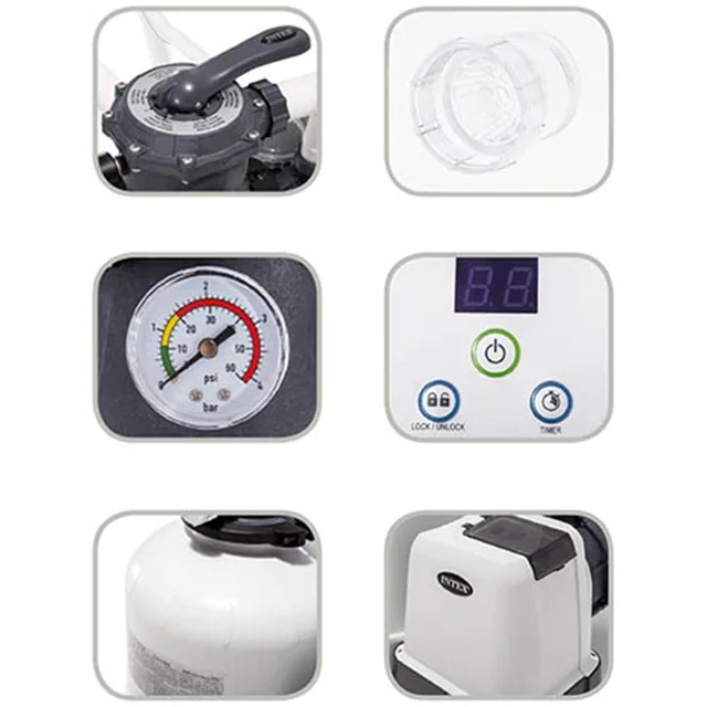 پمپ تصفیه آب شنی اینتکس intex 26644 دارای توان پاکسازی آب به میزان 18000 لیتر می باشد که این کار را به صورت مداوم انجام می دهد. داشتن پمپ تصفیه آب لازم و ضروری است و قادر می باشد محیط را عاری از هر گونه آلودگی و زباله سازد. در این صورت می توان از محیط به وجود آمده به وسیله استخر پیش ساخته نهایت استفاده های لازم را به عمل آورد و همچنین از وجود آن در هر زمان استفاده کرد. این محصول یکی از اورجینال ترین محصولات اینتکس است که در گروه و دسته بندی وسایل جانبی استخر پیش ساخته قرار می گیرد. محصول در کنار بدنه استخر پیش ساخته قرار می گیرد و می تواند به راحتی به بدنه متصل شود. بر روی بدنه استخر های پیش ساخته که قابلیت نصب پمپ تصفیه آب دارند دو دریچه وجود دارد. هر یک از این دریچه ها محل اتصال شلنگ های خارج شده از بدنه پمپ تصفیه آب می باشند.
