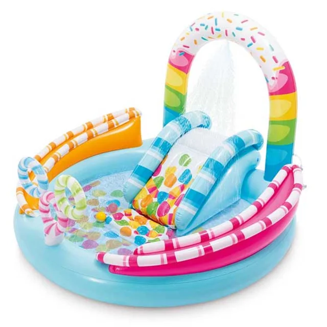 استخر بادی آبنبات جدید اینتکس مدل 57144 یکی از بهترین استخرهای بادی است که از کیفیت بسیار بالایی برخوردار است. این استخر بادی از جنس وینیل بوده و کیفیت بسیار بالایی دارد. اگر به دنبال خرید یک استخر بادی جذاب برای کودکان خودتان هستید، می توانید این استخر بادی مدل آبنبات را انتخاب کنید. وجود سرسره جذاب در این استخر بادی، زیبایی آن را چندین برابر کرده است.